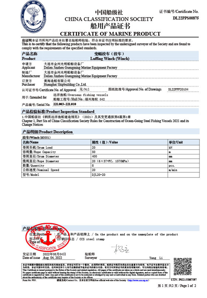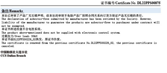 CCS船用產品證書(絞盤)