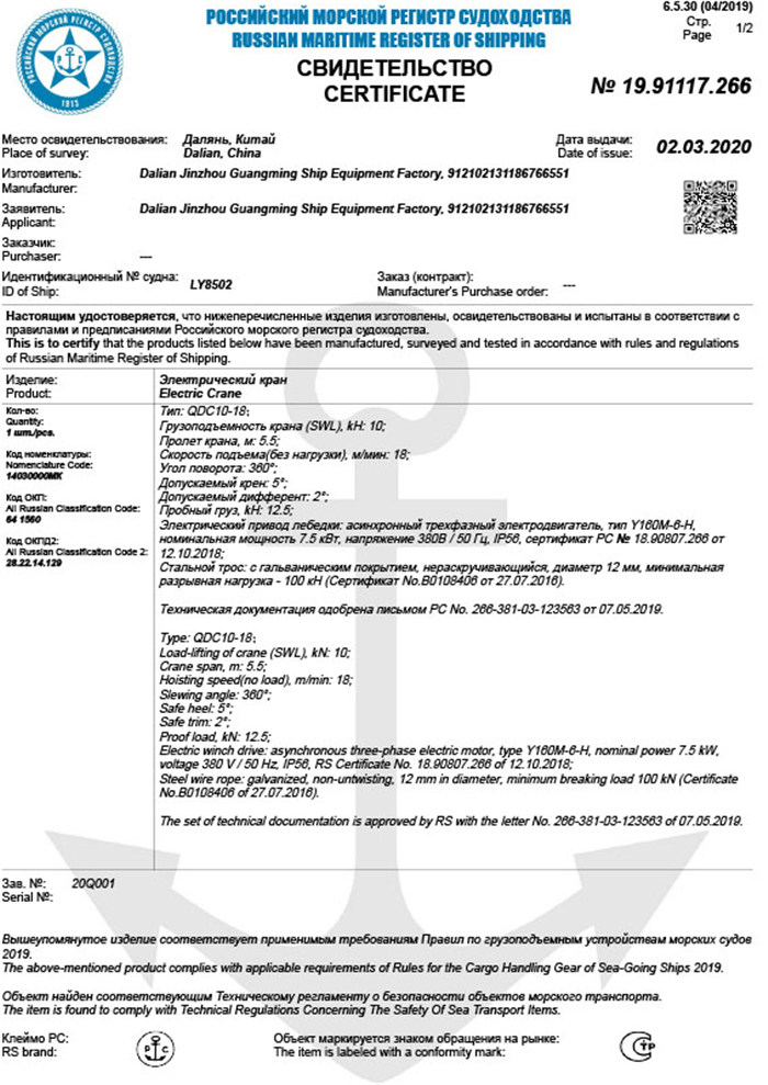 CCS質(zhì)量管理體系認(rèn)證證書
